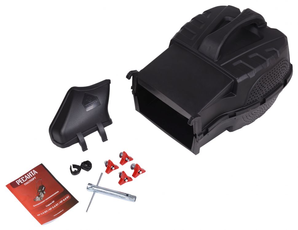 Газонокосилка, Сборная рукоятка (в комплекте с фурнитурой), Травосборник, Паспорт (инструкция), Упаковка