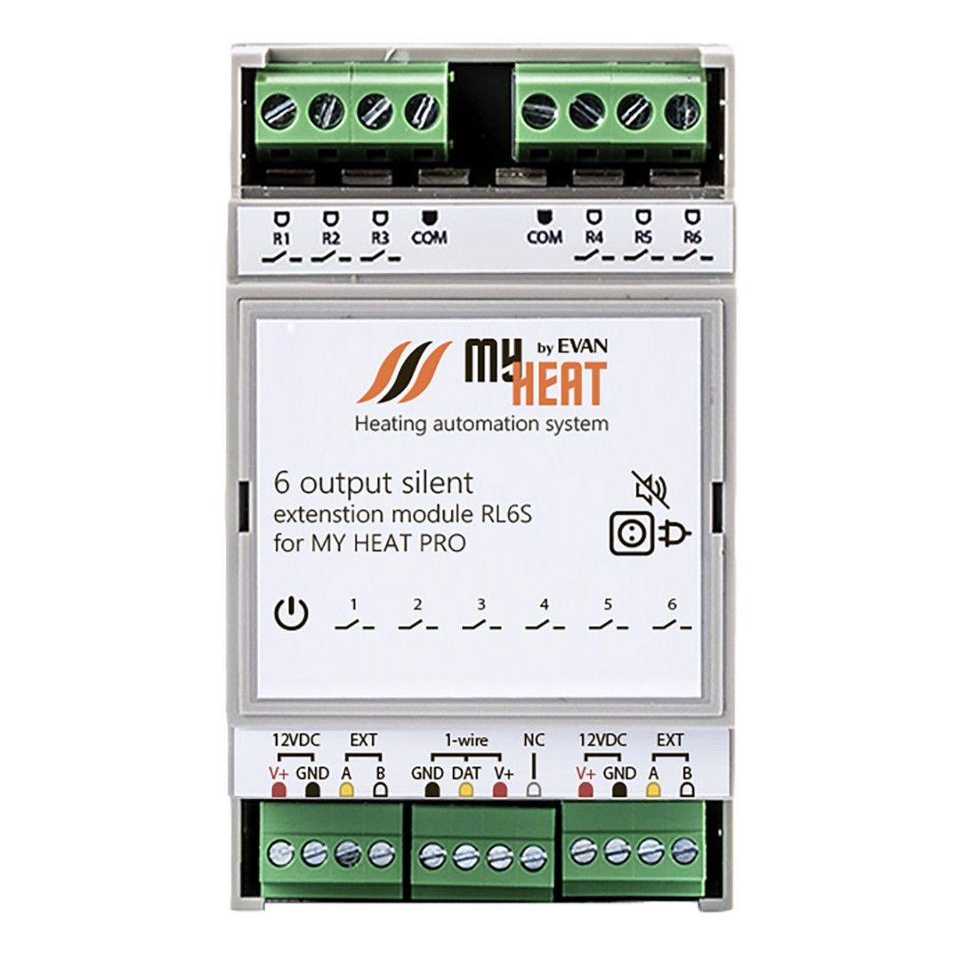 Блок расширения MY HEAT RL6S предназначен для бесшумной коммутации дополнительных шести выходов электрической нагрузки посредством симистора. Блок расширения подключается к контроллеру MY HEAT PRO по проводной шине.
