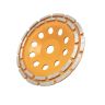 Особенности:• Предназначены для интенсивной грубой зачистки бетона, мрамора, камня, кирпича, гранита. • Рекомендуются для снятия толстых слоев бетона, удаления швов и наплывов после опалубки. • Рекомендуются для черновой обработки, создания шероховатой поверхности, для последующего нанесения штукатурки, шпатлевки, строительного клея. • Двойной слой позволяет выполнять большой объем работ.