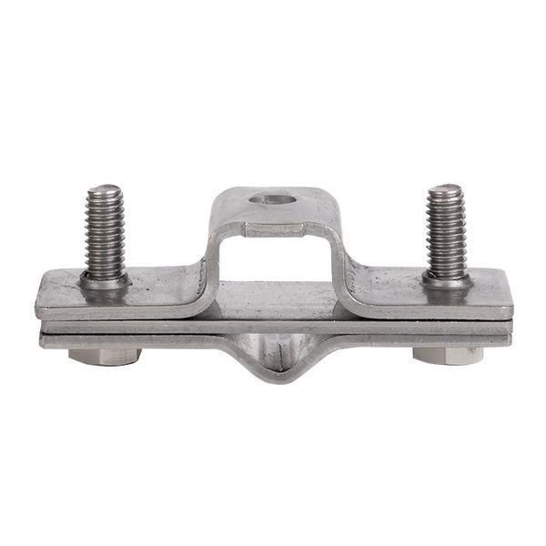 Держатель для полосы и прута предназначен для крепления токоотвода. Конструкция даёт возможность крепить прут O 6–10 мм или полосу шириной до 40 мм.