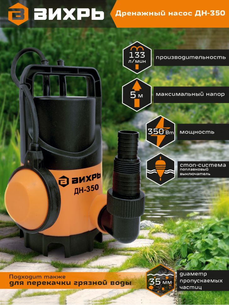 Читать все статьиДренажный насос ВИХРЬ ДН-350