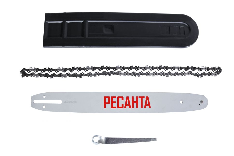 Электропила Ресанта ЭП-2216П предназначена для бытового использования: распиловка бревен, валка садовых деревьев, обрезка сучьев. Благодаря обрезиненной рукоятке держать такой агрегат в руках удобно и комфортно. Привод цепи осуществляется за счет электродвигателя, который работает от сети переменного тока 220В. Преимущества: - Надежное удержание. Удобная задняя рукоятка небольшого размера с пусковым курком жестко сидит в руке, что способствует надежному удержанию электропилы. - Безопасность. Автоматический тормоз цепи в виде щитка обеспечивает безопасность работы с электропилой, в первую очередь, защиту ваших рук. - Комфортное использование. В основании рукоятки предусмотрен специальный фиксатор для предотвращения отсоединения штекера от розетки. - Удобство обслуживания. Заменить щетки электродвигателя можно быстро и просто за счет их удобного расположения. Достаточно открутить крышку щеткодержателя. Отличительными особенностями электропилы Ресанта являются простота и удобство в работе, ведь она не требует заправки топливом и работает от сети 220В. Также стоит отметить низкий уровень шума, создаваемый при работе, а также полное отсутствие выхлопных газов. Это означает, что вы можете использовать пилу не только на улице, но и в помещении при ремонтных и строительных работах. Вы можете легко регулировать натяжение цепи с помощью винта, расположенного на корпусе справа. Прямая передача мощности - проста и надежна. К характеристикам, обеспечивающим комфортное пользование инструментом, также можно отнести автоматическую смазку цепи. Чтобы вы смогли определить уровень смазки для цепи, в корпусе есть смотровое окошко с делениями. Единственная особенность - это недостаточная мобильность, ведь пользоваться инструментом можно только в непосредственной близости от розетки переменного тока 220В. Этот легко исправить, используя переноску (с кабелем подходящего сечения!) или бензогенератор Ресанта. Для электропилы ЭП-2216 подойдут цепи со следующими параметрами: количество звеньев 57, шаг цепи 3/8, толщина ведущего звена 1.3, шина 161.