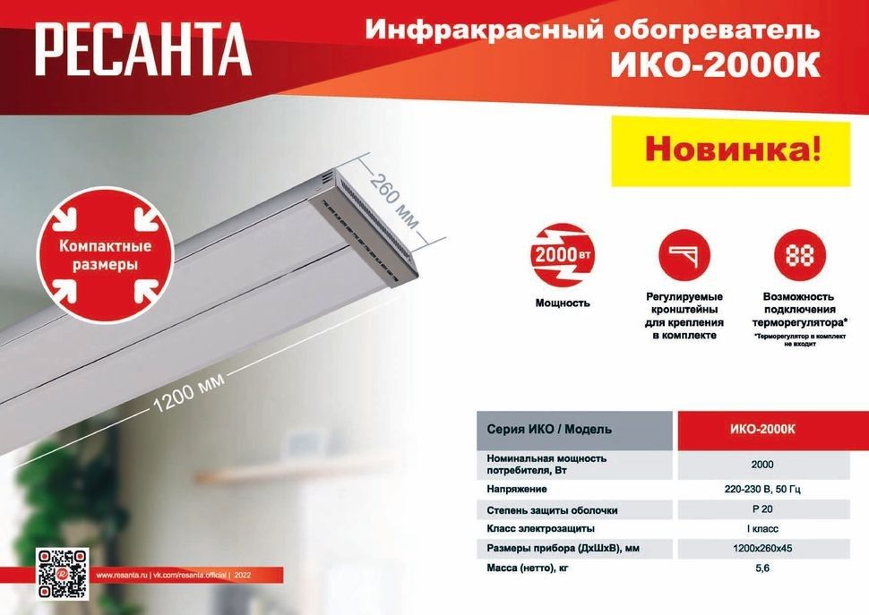 Читать все статьиИнфракрасный обогреватель Ресанта ИКО-2000К