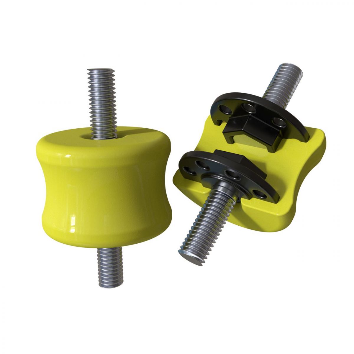Виброопоры изготовлены из высококачественного материала, разработанного на заказ с учетом самых жестких требований безопасности и долговечности. Материал устойчив к атмосферным воздействиям, к углеводородам, жирам органического происхождения, моющим и чистящим средствам на кислотной и щелочной основе, спиртам, химическим основаниям и ультрафиолетовому излучению. Специально разработанный материал обеспечивает устойчивость к высокодинамическим нагрузкам. Также без потери качества виброопору можно использовать в различных климатических зонах. Материал обладает высокой электро- и термоизоляцией и рассчитан на диапазон температор от -50 до +120 deg;C.
