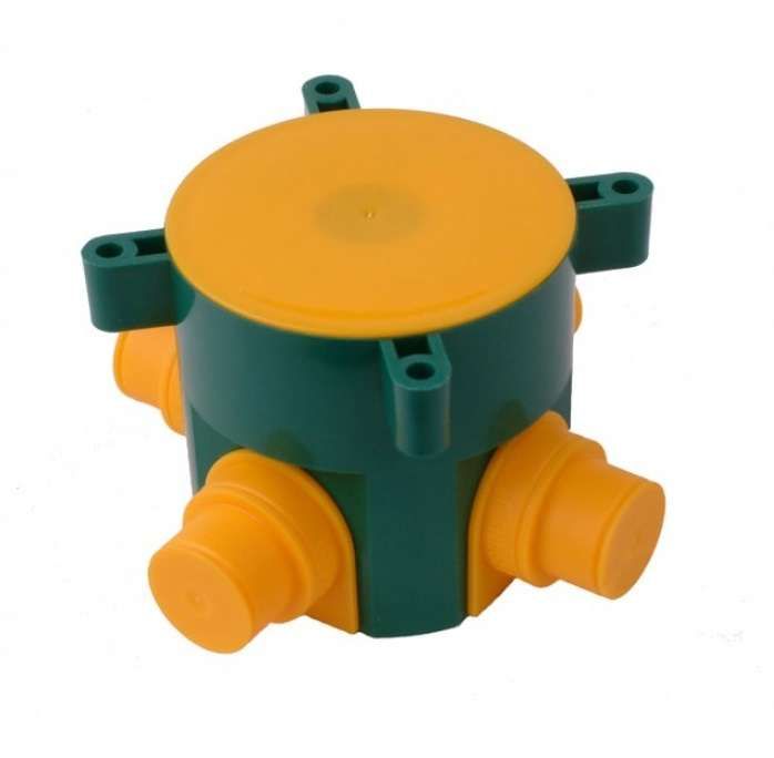 Коробка установочная – монтажный элемент, аксессуар. Корпус изготовлен из полипропилена. Круглой формы. Имеет 4 вводов. IP44. Отличается огнестойкостью (температурный предел 650С). Применяется при монтаже электроустановочных изделий в бетонной стене, через герметичные вводы.