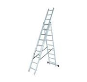 Лестница алюминиевая ВИХРЬ ЛА 3х9 может трансформироваться в зависимости от характера работ. Модель можно использовать как стремянку, стремянку с выдвижной третьей секцией, приставную лестницу. Выдерживает нагрузку до 150 кг.Корпус с антикоррозийным покрытием, изготовлен из алюминия. Благодаря пластиковым наконечникам ножек лестница не скользит по поверхности. Модель компактная, удобно хранить благодаря механизму трансформации. Поперечная траверса надежно фиксирует лестницу на поверхности.Особенности:• Данные лестницы можно использовать как приставную лестницу и как двухстороннюю стремянку, третью секцию можно использовать как отдельную лестницу.•Нержавеющие надежные алюминиевые профиль и ступени, устойчивая конструкция.•Выдерживают нагрузку до 150 кг.