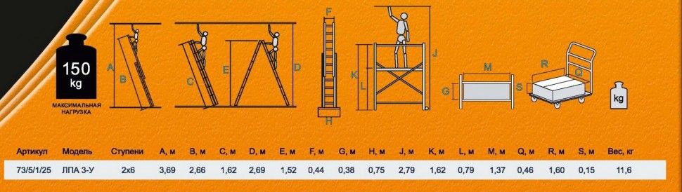 Лестница - помост алюминиевая ВИХРЬ ЛПА 3-У предназначена для обеспечения удобства работы на высоте.