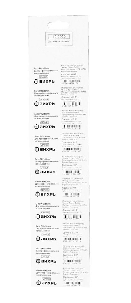 Читать все статьиНабор бит ВИХРЬ PH2 50 мм