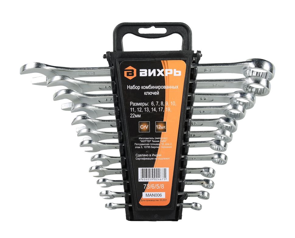 Читать все статьиНабор комбинированных ключей ВИХРЬ 12 шт