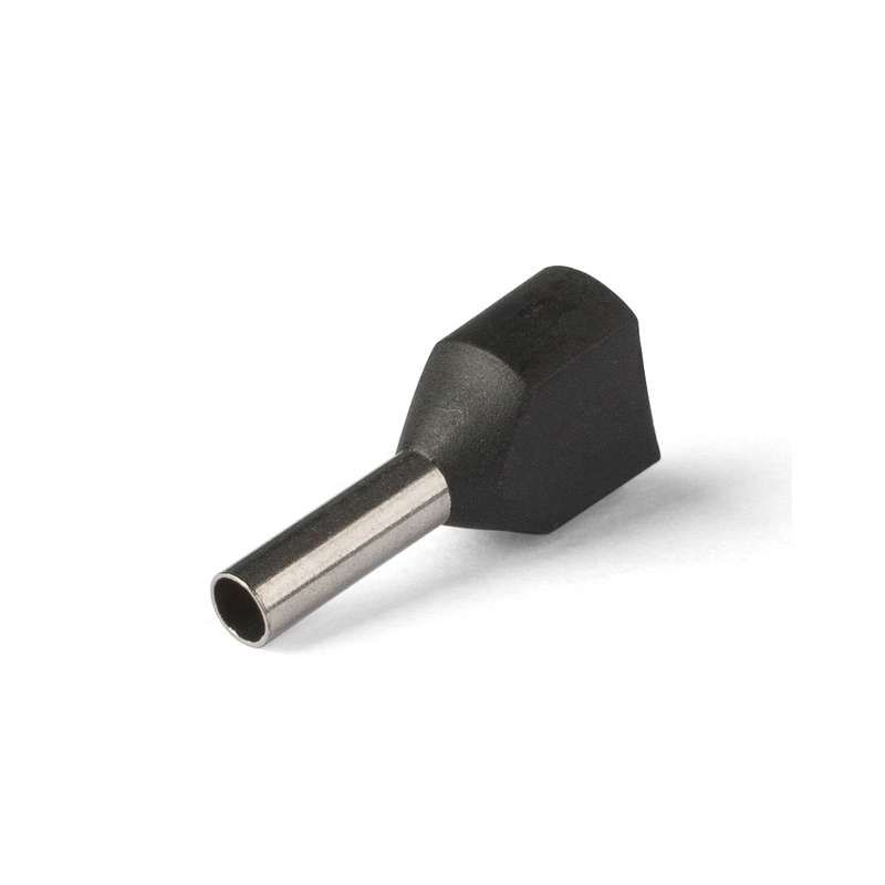 • Для монтажа сдвоенных проводов одинакового сечения • Предназначены для оконцевания методом опрессовки гибких многопроволочных медных проводников. Трансформируют концы многожильных проводов в монолитные штифты • Современная альтернатива обязательному облуживанию концов многожильных проводников при подсоединении к клеммам • Размеры изолированных манжет и втулок наконечников НШВИ(2) рассчитаны для монтажа и подключения двух проводников • В условиях высокой плотности монтажа двойные втулочные наконечники являются единственно возможным контактным соединением двух проводников • Материал коннектора: медь марки М1 • Покрытие коннектора: электролитическое лужение • Материал изоляции: полипропилен. Не содержит галогенов • Термостойкость изоляции: 105 °C • Цвет изолирующих манжет выполнен в соответствии с цветовой маркировкой DIN 46228, часть 4 • Одинарные и двойные втулочные наконечники «КВТ» представлены в одинаковой цветовой гамме стандарта DIN, что облегчает их поразмерную идентификацию • Коническая форма манжеты, тип «Easy Entry», облегчает заведение многожильного провода внутрь медной втулки • Обжим провода поверх медной втулки