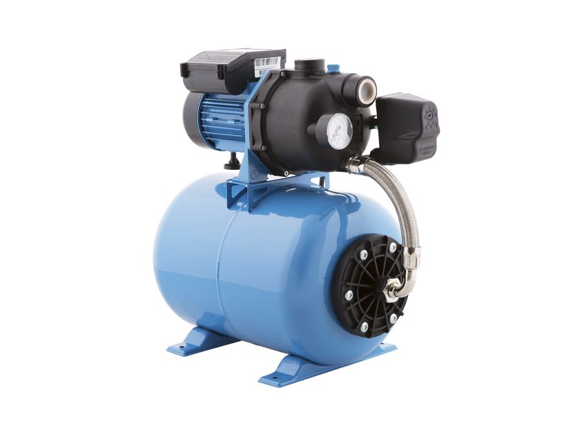 Насосная станция укомплектована поверхностным самовсасывающим электронасосом, горизонтальным гидроаккумулятором емкостью 24nbsp;литра, реле давления, манометром, соединительной арматурой иnbsp;электрошнуром сnbsp;вилкой.