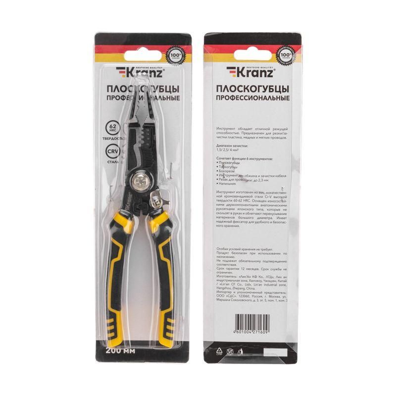 Читать все статьиПлоскогубцы профессиональные многофункциональные 200мм Kranz KR-12-4655-5