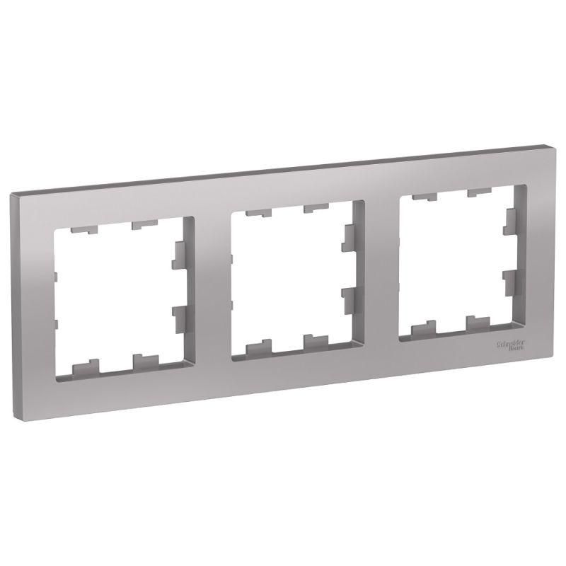 Рамка Systeme Electric серии AtlasDesign в цвете алюминий трёхместная. - Устанавливается в вертикальном и горизонтальном положениях. - Лицевые детали из качественного ABS-пластика, устойчивого к царапинам и УФ-излучению. - Позволяет гармонично вписать электроустановочное изделие в интерьер помещения (ранее Schneider Electric NU200630, S52P806J, S52P806K, S53P806, S53P806J).