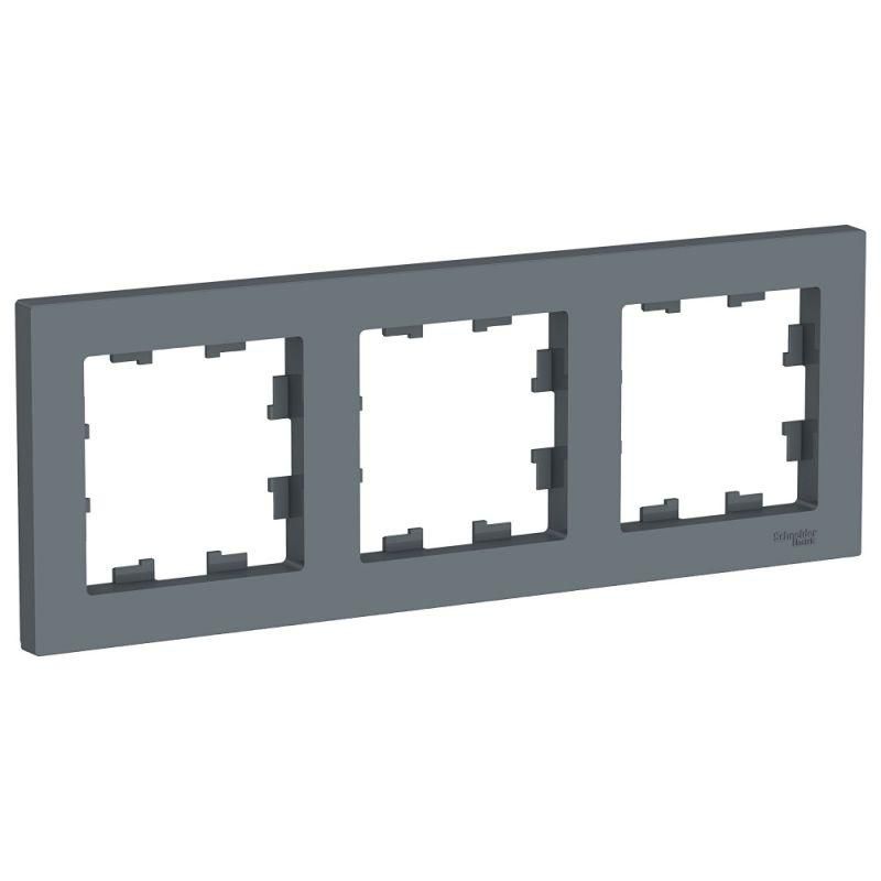 Рамка Systeme Electric серии AtlasDesign в цвете грифель трёхместная. - Устанавливается в вертикальном и горизонтальном положениях. - Лицевые детали из качественного ABS-пластика, устойчивого к царапинам и УФ-излучению. - Позволяет гармонично вписать электроустановочное изделие в интерьер помещения (ранее Schneider Electric S53P806V).