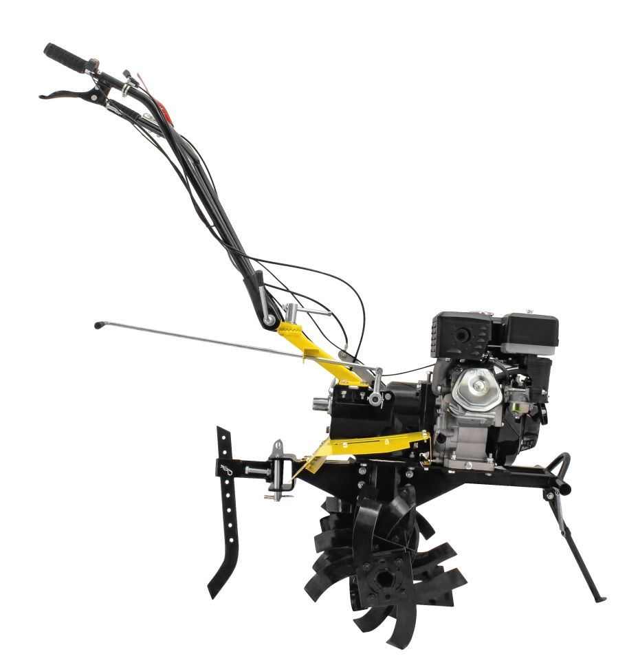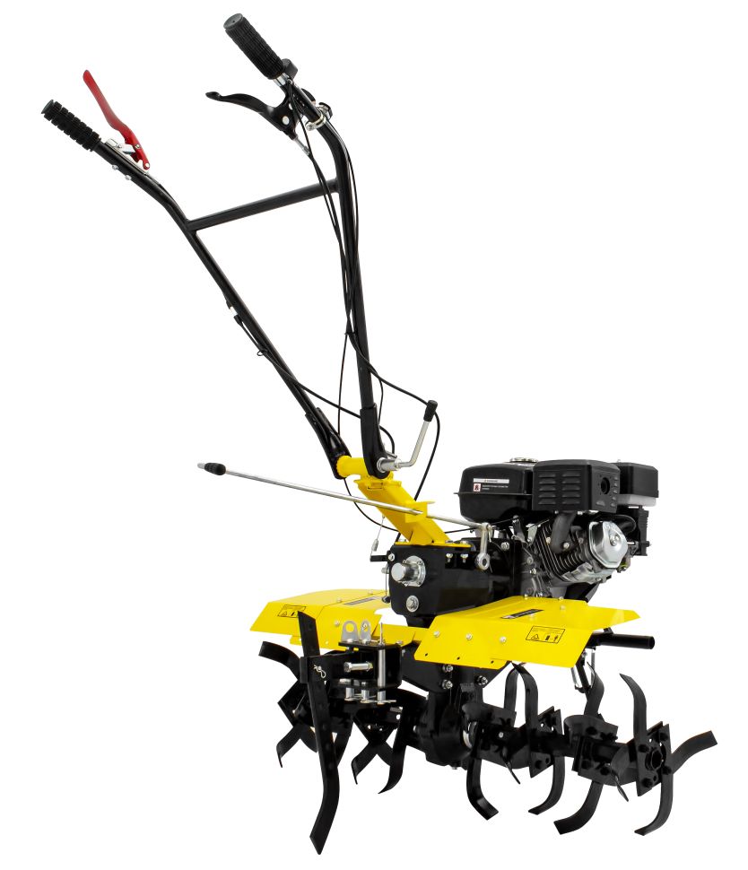 Сельскохозяйственная машина HUTER MK-9500-10 используется для обработки почвы методом культивации, то есть её рыхления без переворота почвы, выравнивания, других операций. Агрегат дает хорошие результаты на приусадебных и фермерских хозяйствах и дачных участках, на ограниченных территориях, междурядьях, на клумбах и возле деревьев. Мотокультиватор укомплектован четырёхтактным двигателем внутреннего сгорания.МК-9500-10 – это аналог МК-9500, с увеличенными колесами 10.Устройство мотокультиватора - Двигатель. На мотокультиваторах HUTER применяются бензиновые двигатели внутреннего сгорания. Двигатели культиваторов снабжаются автоматическими регуляторами частоты вращения, упрощающими работу оператора. Диапазон номинальной мощности линейки наших культиваторов позволяет выбрать подходящий для любых видов работ. - Сцепление и редуктор обеспечивают передачу вращающего момента от двигателя на рабочий вал. - Система агрегатирования предназначена для сопряжения мотокультиватора с навесным оборудованием, которое устанавливается на рабочую ось или раму. - Система управления. Так как вовремя земляных работ оператор шагает за мотокультиватором, все органы управления должны приводиться в действие только руками оператора. Технические характеристики - Мощность – определяет производительность культиватора. Чем мощнее двигатель установлен на культиватор, тем более жесткую почву и большую глубину он может обрабатывать. - Скорости – позволяют выбрать подходящий диапазон для более качественной обработки почвы, а также облегчают извлечение из земли агрегата после окончания работ посредством задней передачи. - Ширина обработки – зависит от установленных лезвий, может достигать до 85 см со стандартными лезвиями и до 120см с дополнительными. Чем больше ширина обработки, тем эффективней работа культиватора. Но бывает необходимо вспахивать узкие полоски земли, для чего лезвия имеют составное устройство, т.е. есть возможность обрабатывать полосы шириной 30 и 50см. - Глубина обработки – зависит от мощности двигателя и установленных лезвий. Чем больше глубина обработки, тем более качественно и эффективно будет вспахана почва. - Объем топливного бака – определяет время непрерывной работы культиватора без дозаправки.Особенности культиваторов HUTER - Возможность регулировки глубины и ширины обработки почвы. - Защита от низкого уровня масла. При уровне масла ниже допустимого сельскохозяйственные машины и мотокультиваторы Huter не заводятся глохнут, если это случилось во время работы. - Возможность выбрать скорость (для тяжелых и средних культиваторов) и две скорости работы "вперед и назад" для всей линейки культиваторов. - Колесо в передней части мотокультиватора для удобства перемещения либо стояночная опора (сошник) в задней для удобства хранения. - Возможность простой разборки культиватора обеспечивает удобство при транспортировке и хранении.