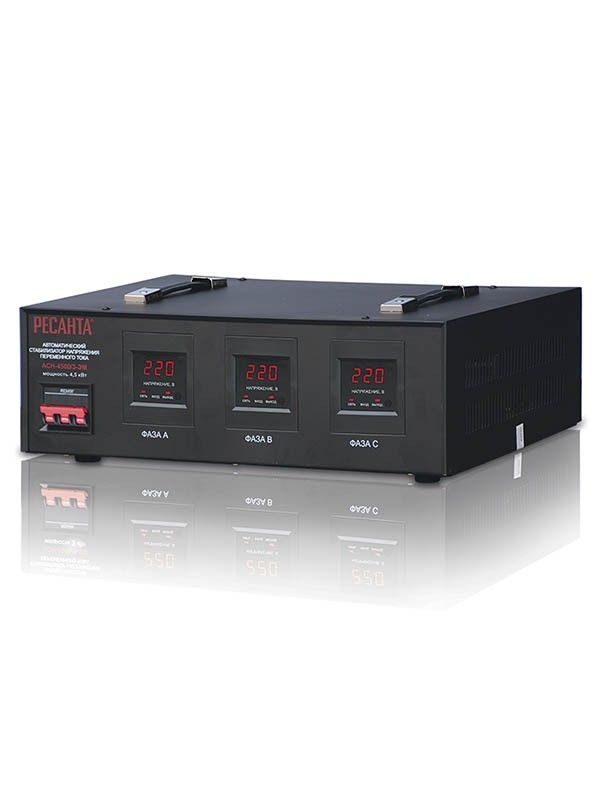 Читать все статьиСтабилизатор напряжения РЕСАНТА АСН-4500/3-ЭМ