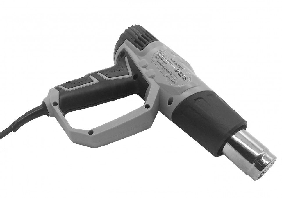 Строительный фен – ручной электроинструмент, предназначенный для обработки горячим воздухом поверхностей и материалов, для удаления красок, формования и сварки пластмассы, нагревания термоусадочных труб; инструмент также подходит для пайки и лужения, размягчения клеевых соединений (швов), а также размораживания водопроводных труб.Строительный фен предназначен для эксплуатации при температуре окружающей среды от -10°С до +40°С, относительной влажности воздуха не более 80% и отсутствии прямого воздействия атмосферных осадков и чрезмерной запылённости воздуха.Преимущества: - Три режима работы; - Легкий и простой в управлении; - Мощный двигатель на 2000 Вт; - Долгий срок службы.Особенности: Простое управление. Прибор оснащён ступенчатым переключателем, задающим три режима регулировки воздушного потока. Безопасность в эксплуатации. Закрытая рукоятка - залог безопасной работы.