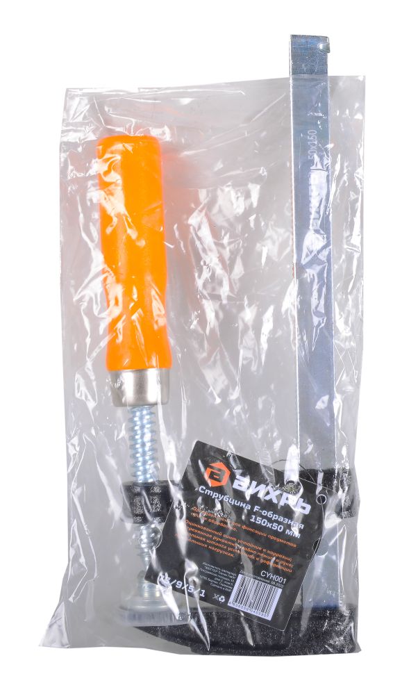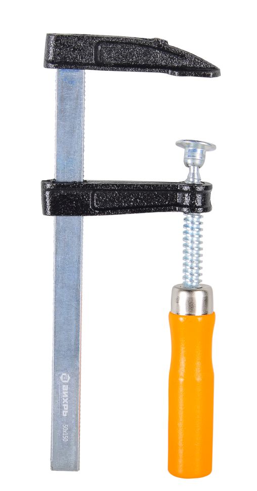 Струбцина Вихрь F-образная 150х50 мм – один из видов вспомогательных инструментов, используемый для фиксации каких-либо деталей в момент обработки или для плотного прижатия их друг к другу при сверлении, склеивании и т.п. Преимущества: Оцинкованный винт устойчив к коррозии; Деревянный рукоятка удобно лежит в руке; Высокопрочная стальная штанга устойчива к деформации при больших нагрузках; Рабочие поверхности захвата оборудованы съёмными пластиковыми накладками, которые предотвращают появление вмятин на скрепляемых деталях.