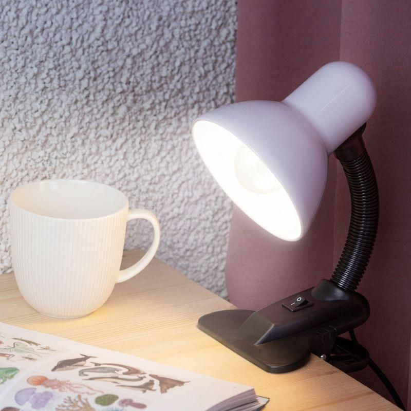 Настольный светильник-прищепка ЭРА N-212-E27-40W-W может использоваться с лампой накаливания, компактной люминесцентной лампой (КЛЛ) или светодиодной (LED) лампой. У светильника прочная удобная прищепка и металлический плафон. Наклон и поворот плафона в любом направлении для удобного направления света. Поставляется в мягкой упаковке - индивидуальном ПЭ пакете.
