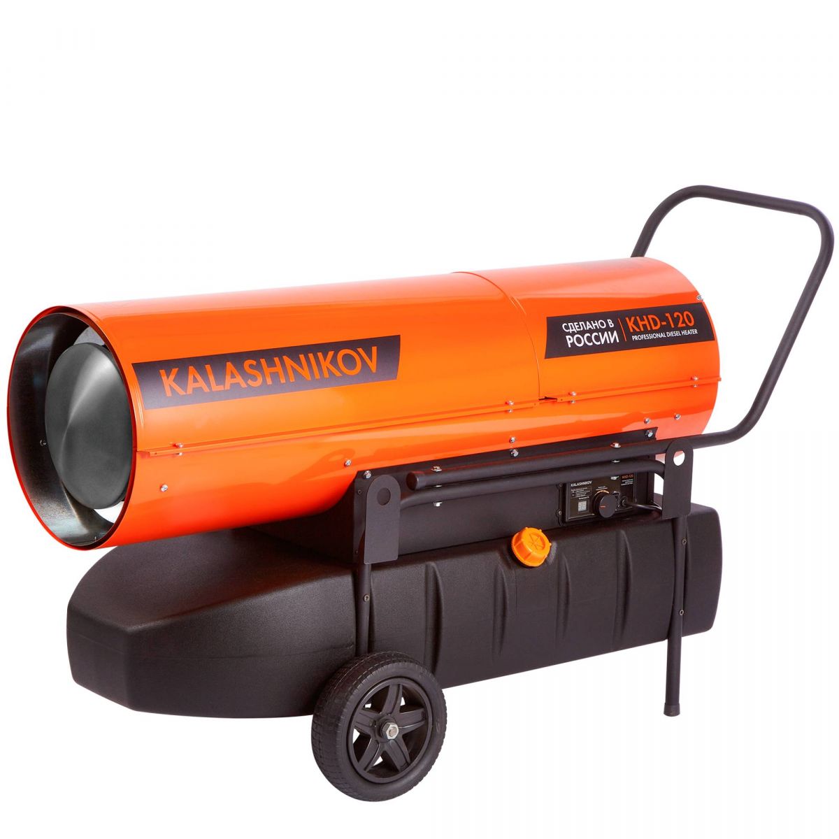 Дизельная тепловая пушка KALASHNIKOV KHD-120 – это мощный обогреватель, работающий на дизельном топливе. Предназначена для обогрева нежилых помещений и локального прогрева рабочих поверхностей. Высокий уровень КПД прибора близок кnbsp;100, а тепловая мощность 120nbsp;кВт, производимая тепловой пушкой – вполне достаточна для использования устройства в качестве мощного генератора тепла.