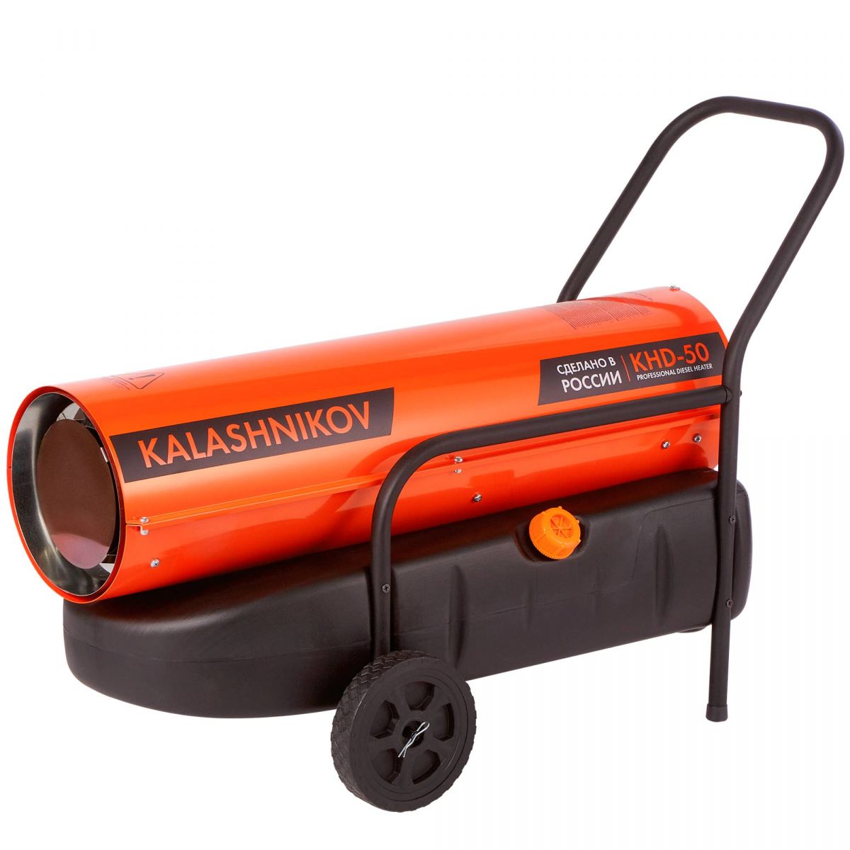 Дизельная тепловая пушка KALASHNIKOV KHD-50 – это мощный обогреватель, работающий на дизельном топливе. Предназначена для обогрева нежилых помещений и локального прогрева рабочих поверхностей. Высокий уровень КПД прибора близок кnbsp;100, а тепловая мощность 50nbsp;кВт, производимая тепловой пушкой – вполне достаточна для использования устройства в качестве мощного генератора тепла.