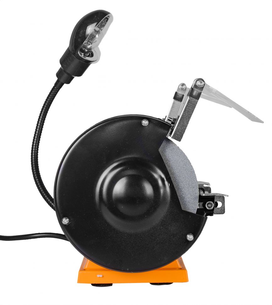 Станок точильный (точило для заточки инструмента) ВИХРЬ относится к типу универсальных лёгких заточных станков с приводом от электромотора и является низковольтным оборудованием. Точильный станок предназначен для заточки ножей, стамесок и другого режущего инструмента.Преимуществом данного станка является подсветка.Комплект поставки: Точильный станок 1 шт. Круг шлифовальный 2 шт. Экран защитный 2 шт. Искрогаситель 2 шт. Рабочий упор 2 шт.Паспорт (инструкция) 1 шт. Упаковка 1 шт.