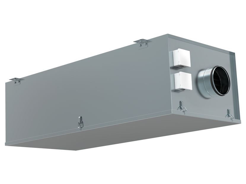 Приточная установка оснащена фильтром класса EU5, электрическим нагревателем с ТЭНами из нержавеющей стали и вентилятором. Все вентиляторы оборудованы асинхронным двигателем с внешним ротором и уплотненными, не требующими обслуживания подшипниками, что увеличивает срок их службы. Защита двигателя вентилятора осуществляется встроенными термоконтактами. Трехфазные электрические нагреватели оснащены двухступенчатой защитой от перегрева. Первая ступень настроена на 60deg;С и перезапускается автоматически, вторая ступень настроена на 120deg;С с ручным перезапуском.