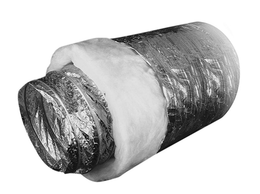 Гибкие теплоизолированные воздуховоды предназначены для вентиляции и кондиционирования воздуха. Теплоизолированный воздуховод изготавливаются из многослойной металлизированной полимерной пленки со спиральным каркасом из стальной проволоки между слоями, слоя теплоизоляции толщиной 30 мм и наружного чехла, выполненного из металлизированной пленки. Легко соединяется с каналами круглого и овального сечения. При высоких температурах или в случае пожара токсичные газы не выделяются.