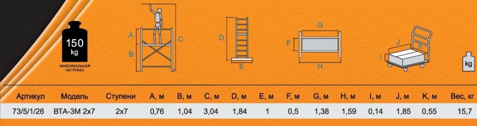 Читать все статьиВышка - тура алюминиевая ВИХРЬ ВТА-3М 2х7