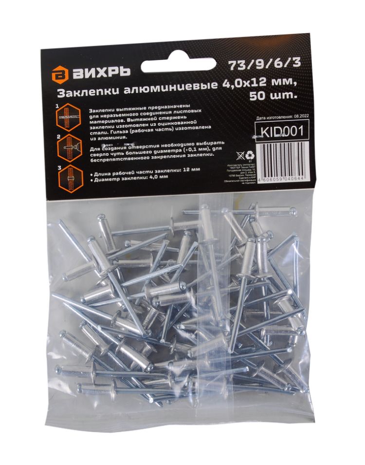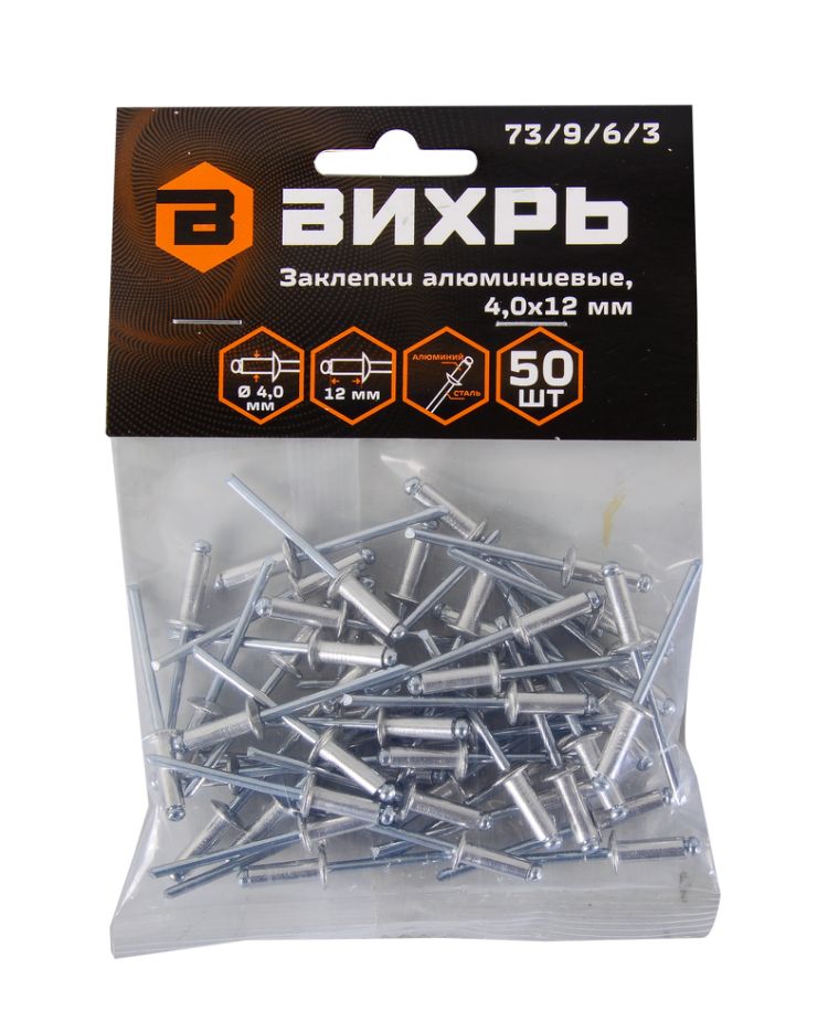 Читать все статьиЗаклёпки алюминиевые Вихрь 4,0х12 мм, 50 шт.