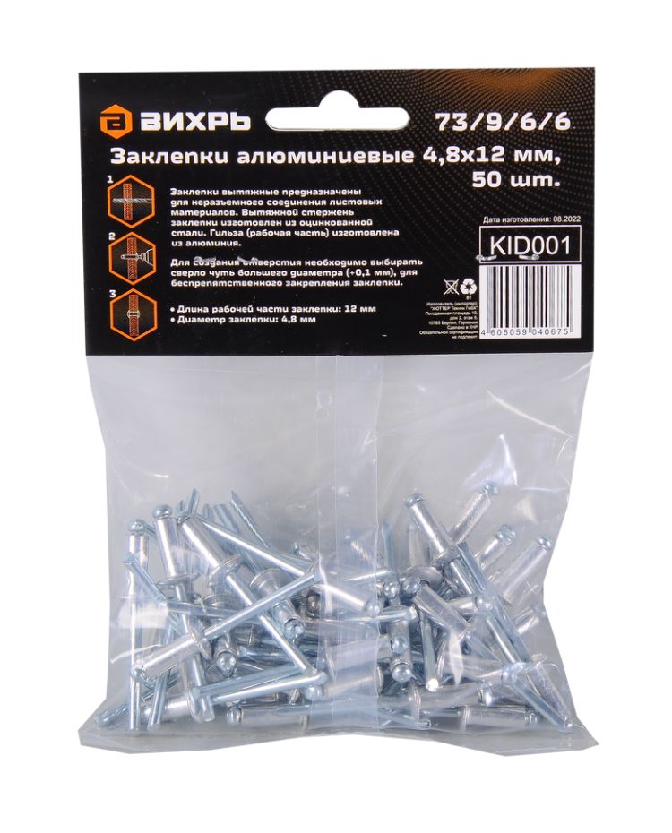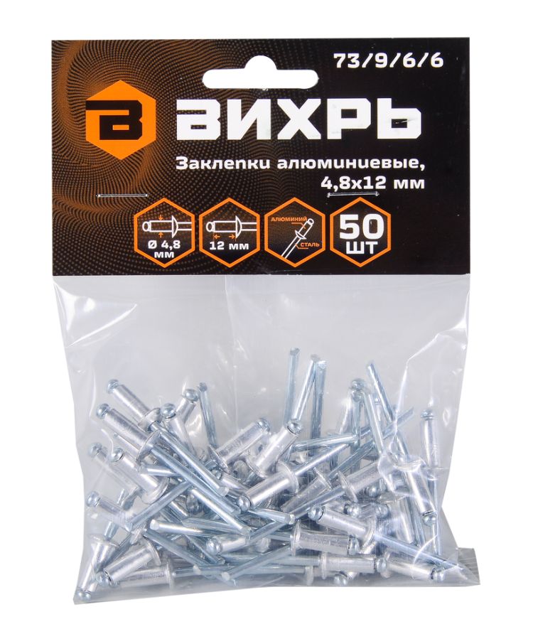 Читать все статьиЗаклёпки алюминиевые Вихрь 4,8х12 мм, 50 шт.